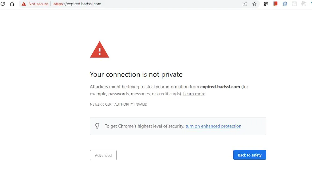 SSL certificates protect the data that is exchanged between your website and its users. If a user does not have a private connection, browsers warn them with messages such as "Your connection is not private." This can drive away visitors right away, hurting credibility and conversion rates.