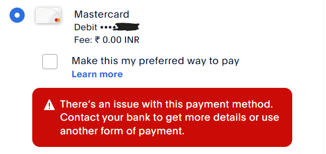A checkout might fail only for a specific payment method.